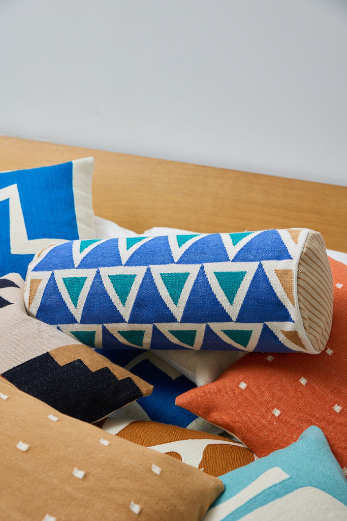 This geometric throw pillow has been ethically hand woven by artisans in Rajasthan, India, using a traditional weaving technique which is native to this region.