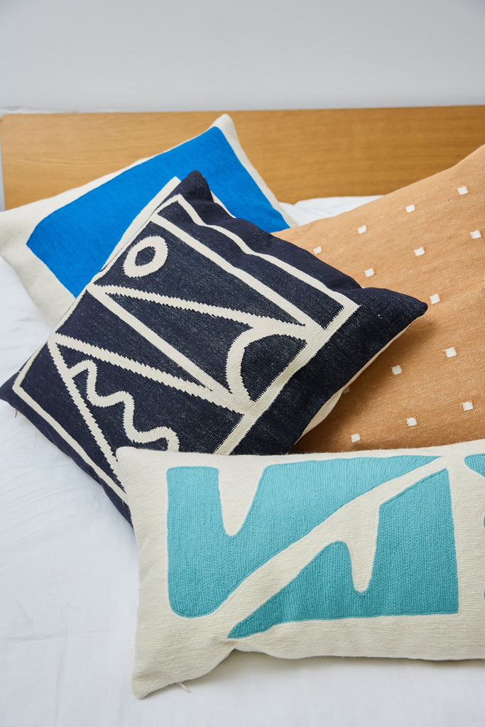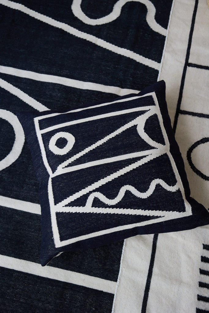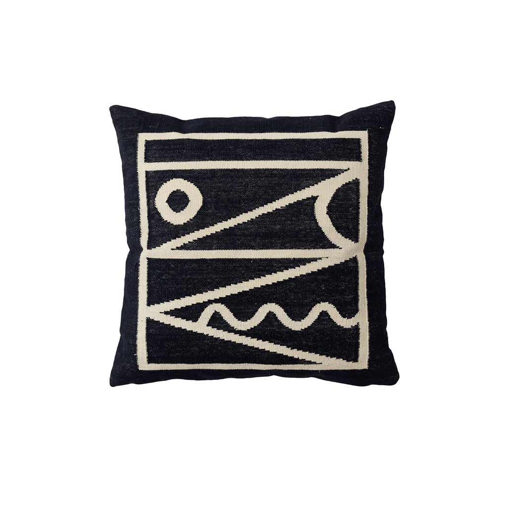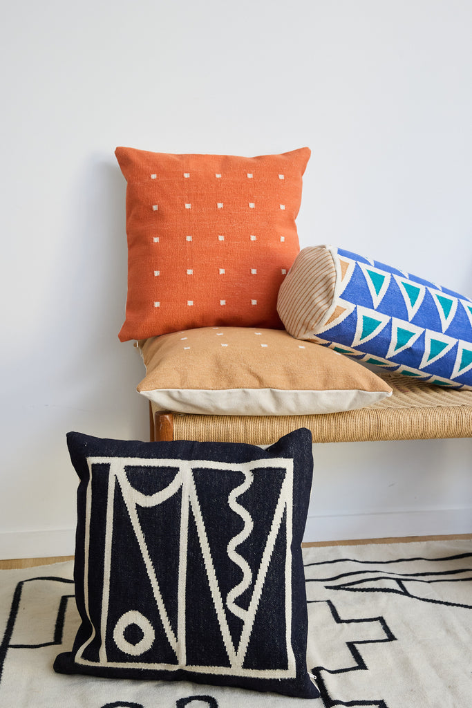 This geometric throw pillow has been ethically hand woven by artisans in Rajasthan, India, using a traditional weaving technique which is native to this region.