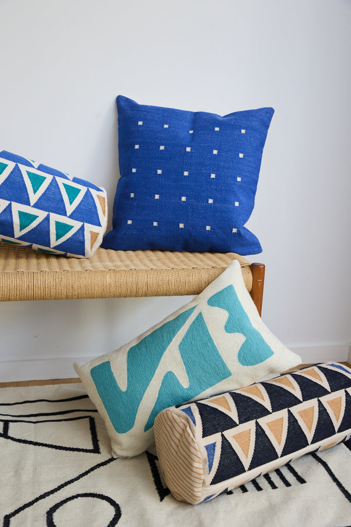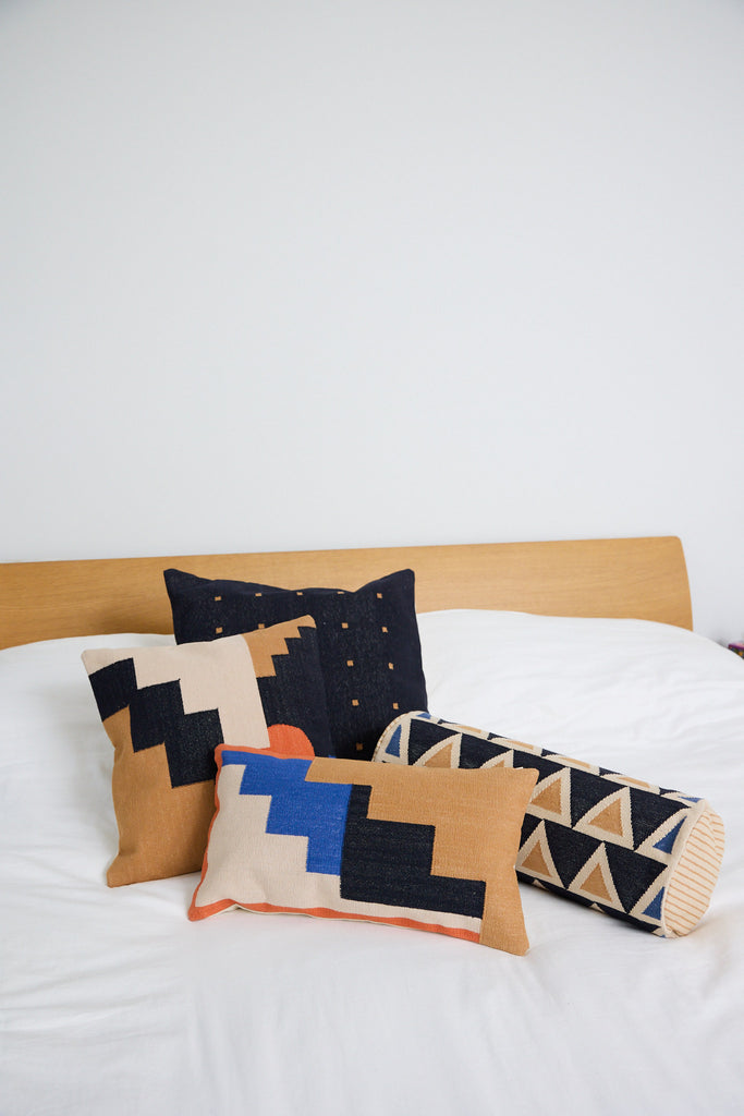 Our bolster throw pillows are ethically hand woven by artisans in Rajasthan, India, using a traditional weaving technique which is native to this region.